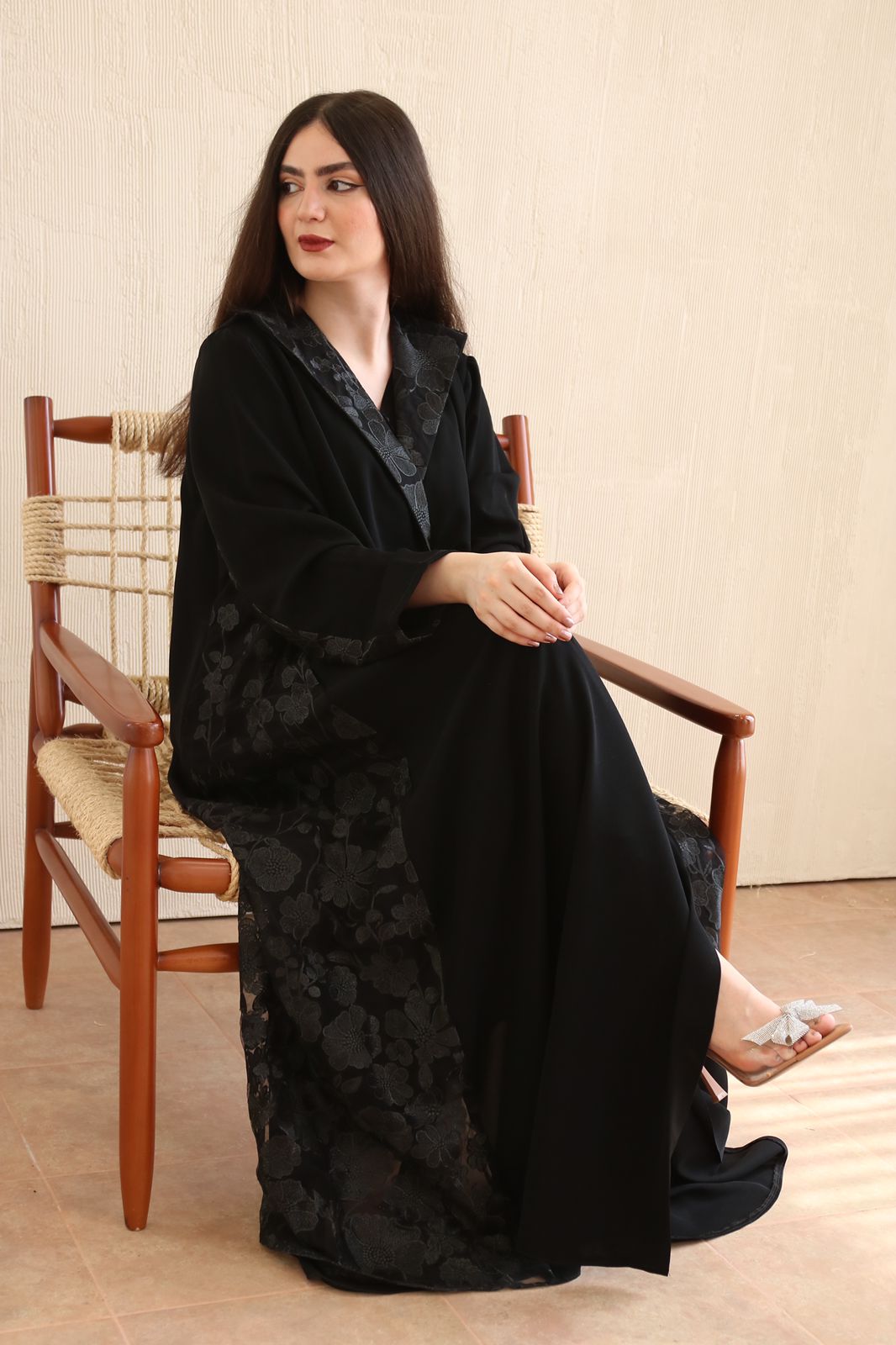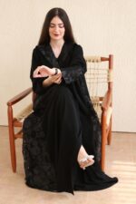 عبايه بقماش كريب مع دانتيل هندي + شيله