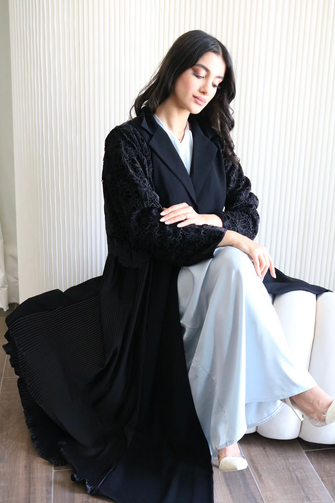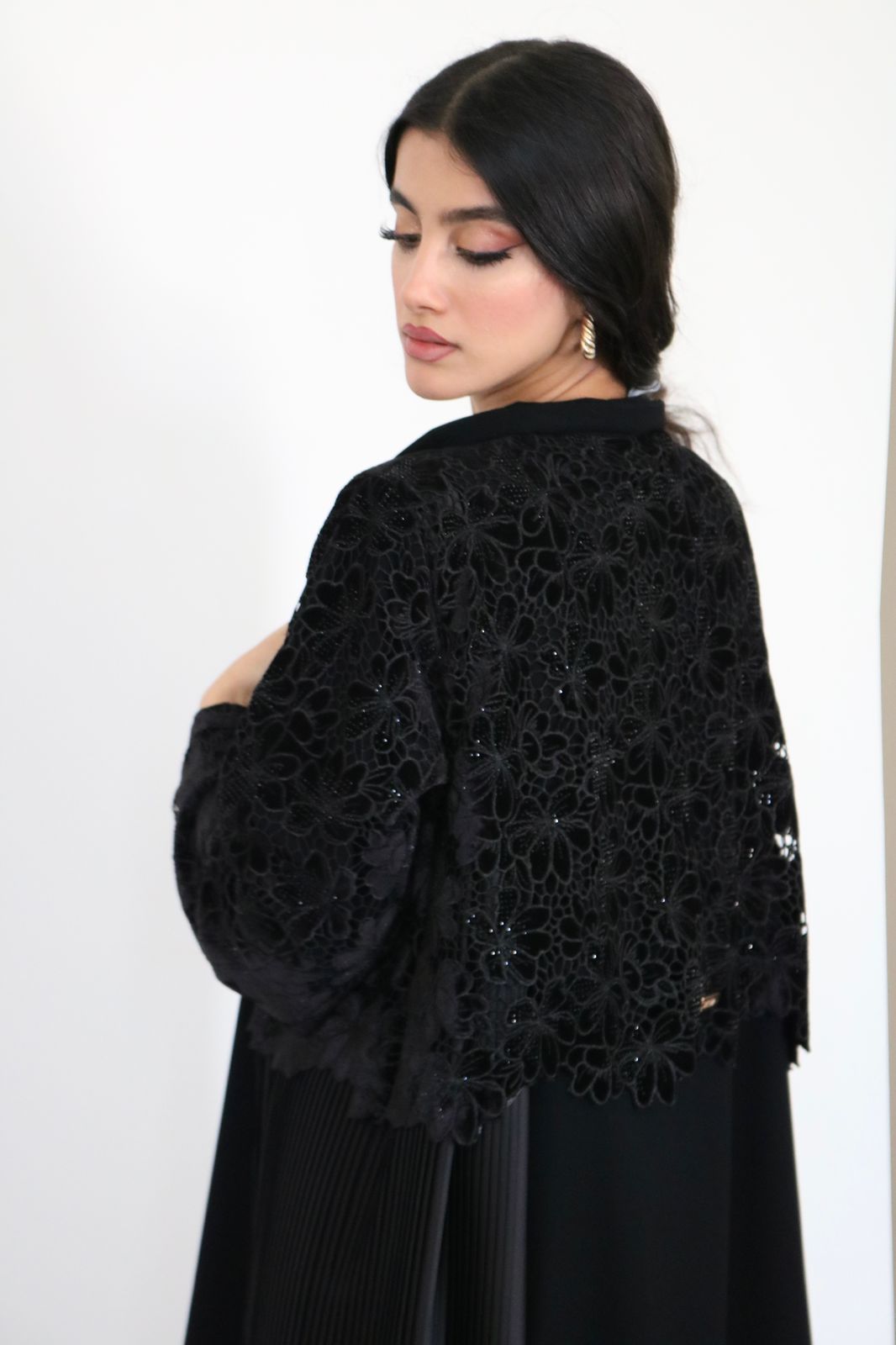 عبايه مع شيله بخام كريب مع دانتيل مخمل