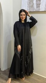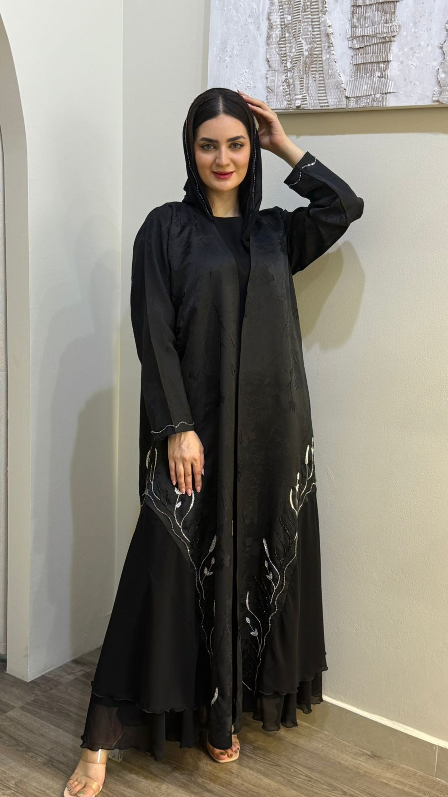 عباية بخام جاكارد مع شيفون+ شك يدوي ياباني